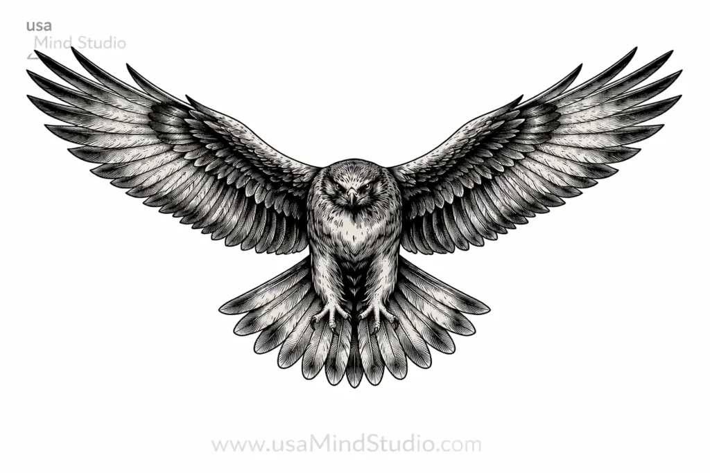 Hawk tattoo symbolism is among the most popular in American tattoo culture today. People choose hawk tattoos as symbols of freedom, sharp spiritual vision, personal strength, and divine protection. They are often chosen by people who identify as visionaries, natural leaders, or those who have navigated a difficult period and emerged with new clarity. The most common hawk tattoo designs — wings spread wide, eyes fierce and focused — capture the essential hawk energy beautifully.