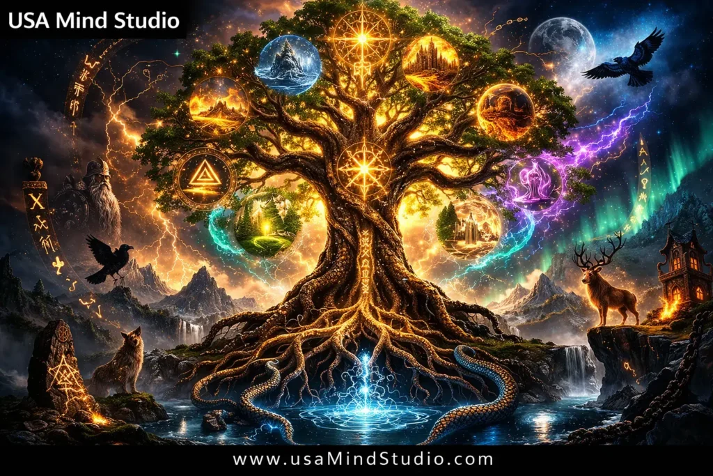 In Wicca and broader neopagan traditions, 9 holds sacred power drawn directly from its deep roots in pre-Christian Germanic and Celtic spiritual practice — the same traditions that produced Odin’s nine-night hanging and the Nine Worlds of Norse cosmology.